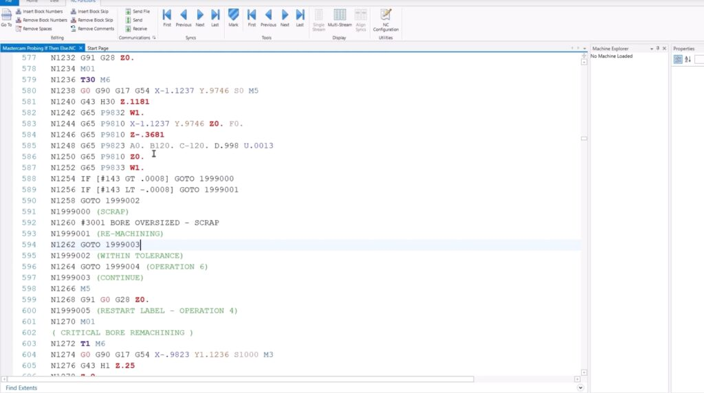 El código postprocesado debe revisarse para asegurarse de que la lógica If-Then se traduzca correctamente al G-code específico del controlador (por ejemplo, GOTO y otras instrucciones condicionales admitidas por Fanuc, Siemens, Haas, etc.). La prueba en máquina bajo supervisión inicial es práctica estandarizada para validar la fiabilidad antes de operar en producción.