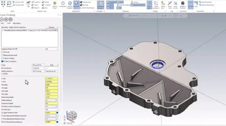 - Integración total con NC: Mastercam genera G-code y macros específicos para sistemas Renishaw, Blum-Novotest y otros dispositivos, que se integran directamente en la secuencia de maquinado. mastercam.com