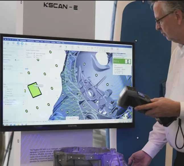 Por su parte, los escáneres KSCAN-E, KSCAN-X y KSCAN-Magic amplían el alcance con modos de escaneo láser múltiple y fotogrametría integrada, permitiendo trabajar sobre piezas de distintos tamaños, desde componentes plásticos hasta grandes subconjuntos mecánicos.