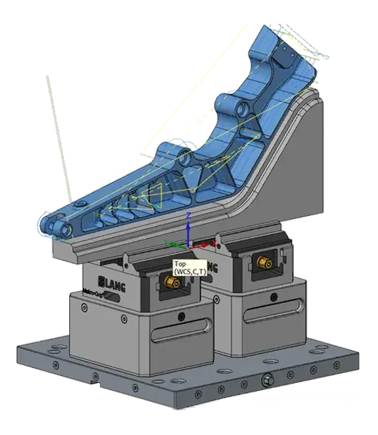 Personalice la IA Importe su modelo CAD en Mastercam y configure la máquina junto con el sistema de sujeción que utilizará.