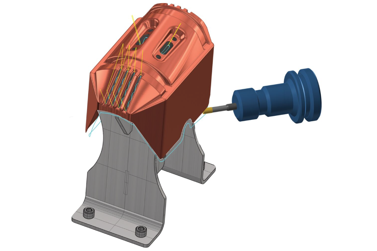 Mastercam 5-Axis curve machining & drilling es un complemento que le ayuda a aprovechar mejor las capacidades de las máquinas de 5 ejes. Su máquina multieje puede taladrar agujeros desde diferentes ángulos con una sola configuración de fijación, ahorrando tiempo y aumentando la productividad.
