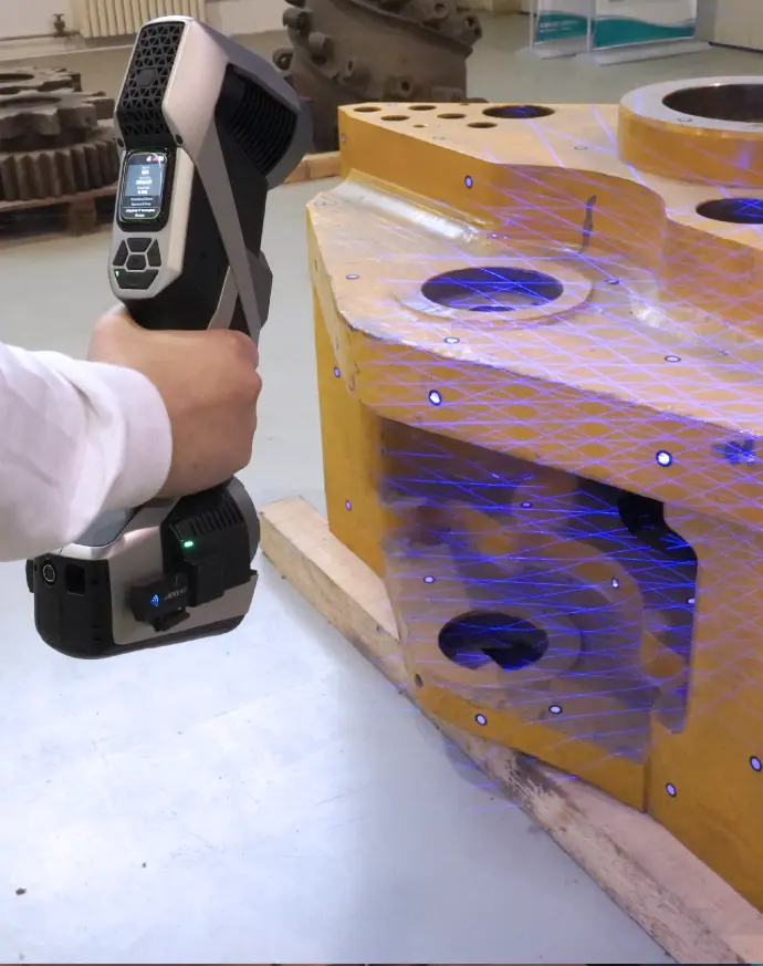 URIM CADAVSHMEIP se enorgullece de presentar el escáner 3D inalámbrico KSCAN-X. Una solución revolucionaria para la medición 3D de gran precisión en áreas extensas. Gracias a la avanzada tecnología inalámbrica y la fotogrametría adaptativa de SCANOLOGY, el KSCAN-X ofrece un rendimiento de escaneo inteligente con total movilidad, estableciendo un nuevo estándar en la metrología industrial a gran escala.