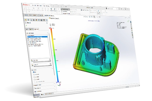 Diseñada específicamente para quienes desarrollan piezas de plástico y moldes de inyección, proporciona las herramientas necesarias para identificar de forma temprana posibles problemas de fabricación durante el proceso de diseño. Esta solución, fácil de usar, permite simular y predecir patrones de llenado, evitar defectos en las piezas y reducir costos y plazos de desarrollo, todo ello trabajando directamente sobre la interfaz de SolidWorks.